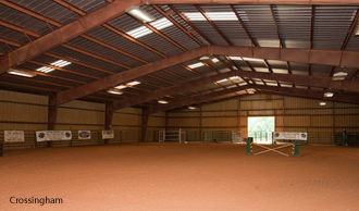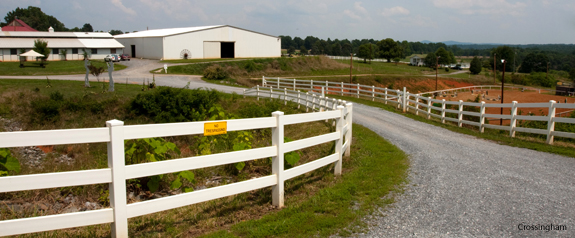 The outdoor arena (at right), seen from the entrance to Serene Creek Run Riding Center.