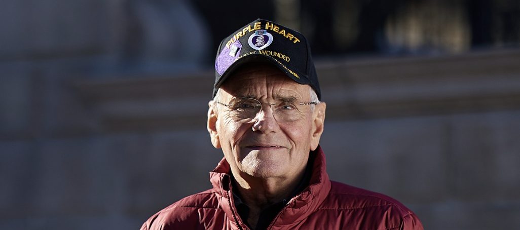 During a special military appreciation halftime show at Liberty University’s regular-season football finale against New Mexico State on Saturday at Williams Stadium, decorated United States Marine Corps combat veteran Dennis Janiak will be presented the George Rogers Champion of Freedom Award for his service in Vietnam (1967-68) and for the impact he has made in the lives of many veterans through his work with the Military Order of the Purple Heart.
