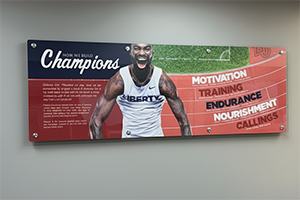 All wide-format pieces displayed publicly must comply with Liberty’s Brand Guide and Signage Policy and have Marketing approval. Submit approvals via the Project Request Form on the Marketing Department webpage or contact your Marketing Project Coordinator for approval.