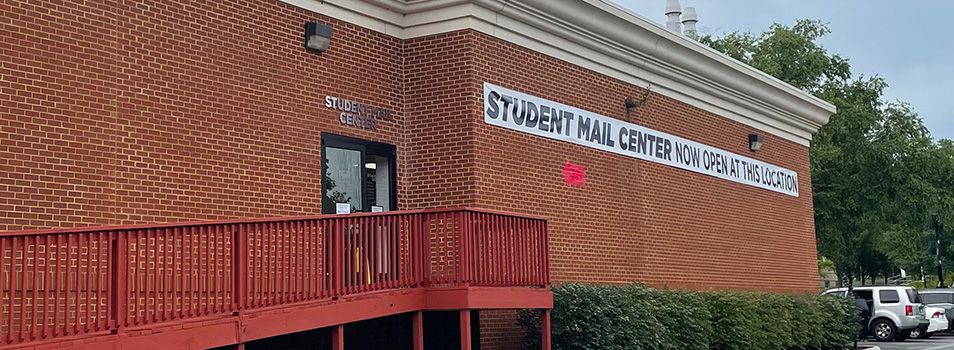 The Student Mail Center is located in the back of the old Reber-Thomas Dining Hall, adjacent to both the Freedom Tower and the Academic Commons Parking Garage. View the Campus Map for assistance in locating us.