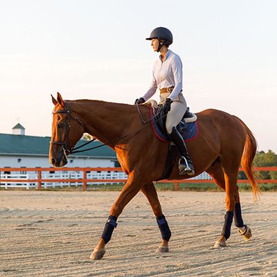 When visiting the Equestrian Center, you should wear some form of closed-toed shoes. Wearing a pair of boots or closed-toed shoes will also help protect your foot in the event you were to get stepped on. If you are riding during your visit, you need to wear a pair of close-toed boots that will keep your foot from sliding around or out of the stirrups. Riders also must wear riding pants or unripped jeans and a fitted shirt.