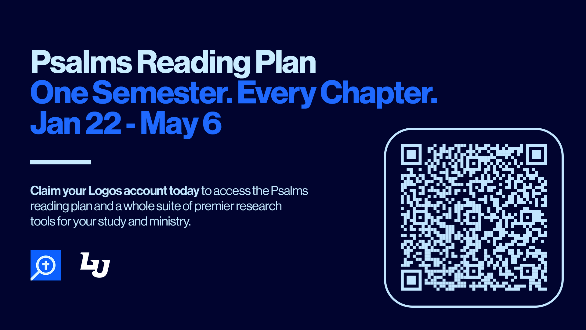 We’ve opened this plan to the entire university community! We’d love to have parents join in to follow the plan as well, so they can follow along with their students in studying God’s Word! The link to join the reading plan is: Psalms Reading Plan or use the QR code to the right.