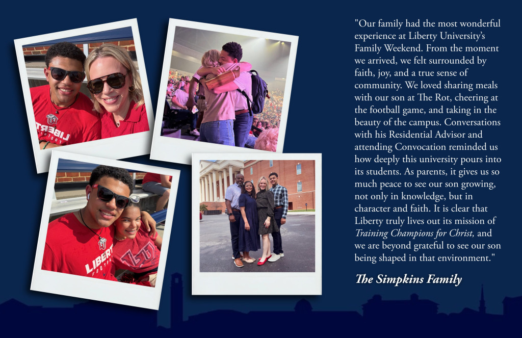 Family Weekend is a highlight for the Liberty community. It is our privilege to invite you to enjoy a weekend with your student at their home away from home! There’s something for everyone…and you can plan the weekend around the interests of your student and family.