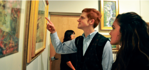 Art show — Spectators gather at the Liberty University Art Gallery to view and enjoy the art of L. Diane Johnson. Photo credit: Jaja Hsu