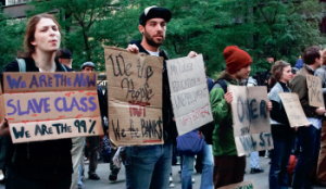 The 99 percent — Protestors speak out about corporate greed, skyrocketing college debt and more. Photo credit: Ashley Bollinger
