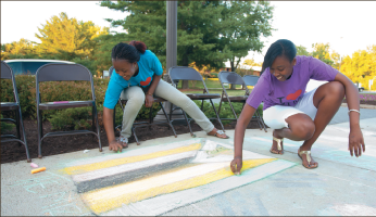 Welcome party — Michelle Han waits in line with friends at the World Wide Welcome party in front of DeMoss, where new and returning international students had an opportunity to meet friends. Photo Credit: Ruth Bibby