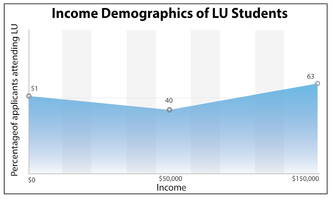According to Ritz, if students with no EFC applies to Liberty, about 49 to 51 percent end up coming to Liberty, because they will receive help with need-based funds like the federal Pell Grants. On the other end, about 63 percent of students with a very high EFC end up coming to Liberty. However, Ritz said that only about 40 percent of middle-income students end up coming to Liberty, and this is because they have little, if any, federal need-based aid.