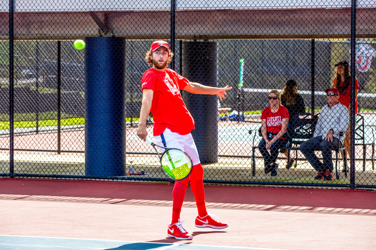 Although junior Chase Burton has the most single wins on the Liberty tennis team, he does not allow that to distract him.