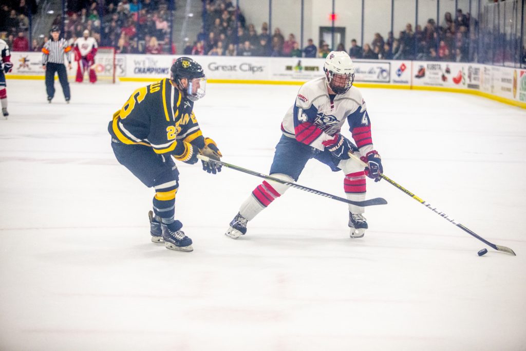 Physicality defined the first period, with Liberty denying Adrian of many potential scoring opportunities. Liberty pushed the pace during the period which led to two goals — one from junior wing Brock Thompson on an assist from sophomore center Devin Pierce. The goal was Thompson’s 17th of the season.