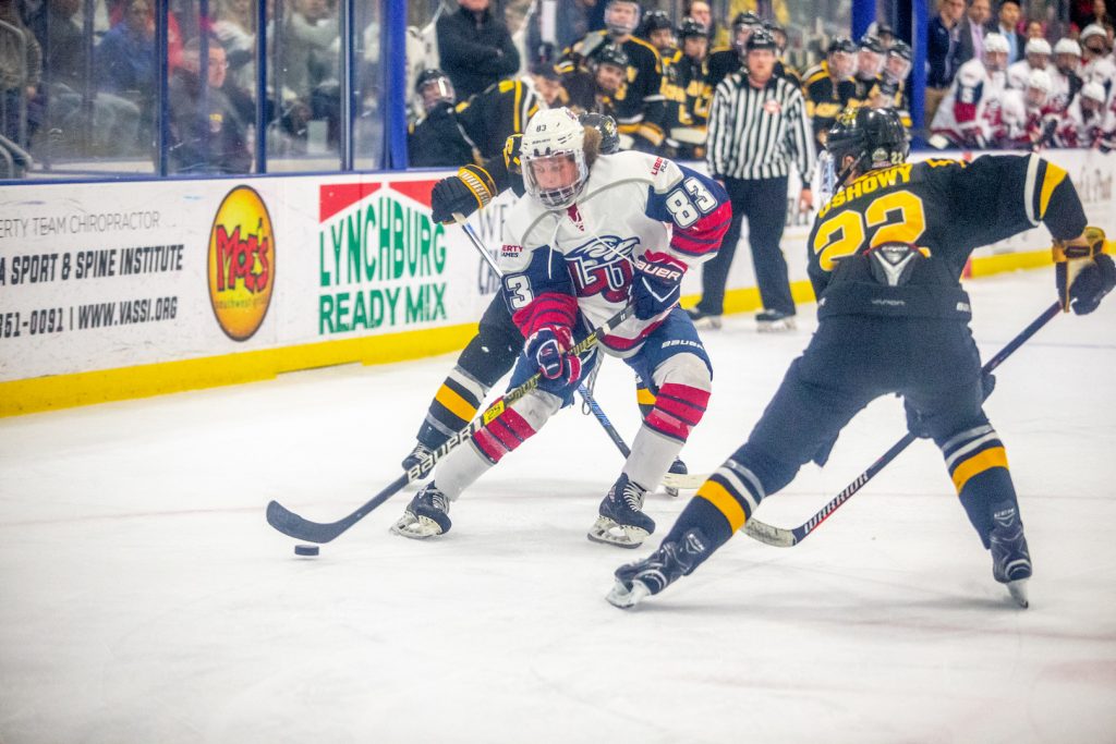 Liberty relinquished its lead when Adrian freshman defenseman Dante Raposo scored on another power play with 7:16 left in the third period.