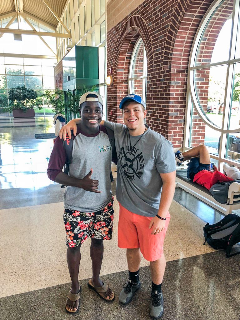 SUPPORT — Walker with former roommate Addison before leaving LU.