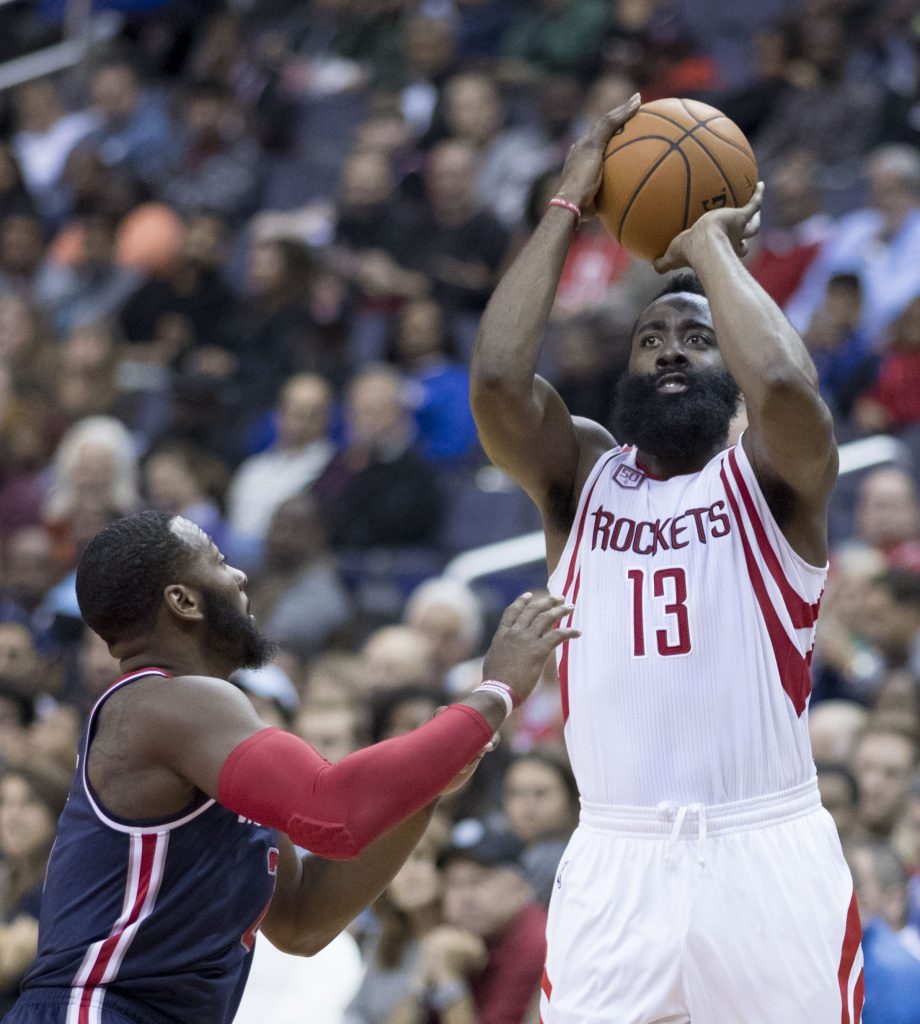 The NBA rulebook states: “A player is never permitted to move into the path of an opponent after the opponent has started his upward jumping motion.” By jumping farther out horizontally and kicking his leg up, Harden has created a jump shot that enlarges his shooting path and makes it harder for defenders to contest his shots without fouling.