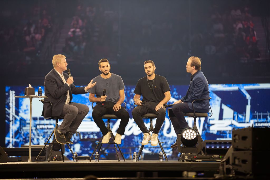 Following worship, Chancellor Jonathan Falwell introduced brothers Jonathan and Ido Lulu-Shamriz, survivors of Hamas’ attack on Israel Oct. 7. The brothers were also joined onstage with former Liberty Campus Pastor Johnnie Moore, who serves as a commissioner for the U.S. Commission on International Religious Freedom.
