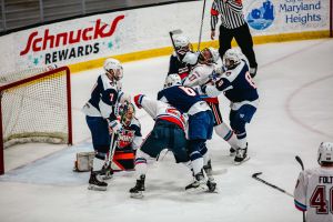 “I was proud of our guys,” Flames Head Coach Kirk Handy said. “I didn’t think we had a great start in the first period, you know, and then there’s a lot of special teams, which isn’t always beneficial. But I thought in the second period we played pretty well, and as we continued, I thought our team played pretty well overall.”