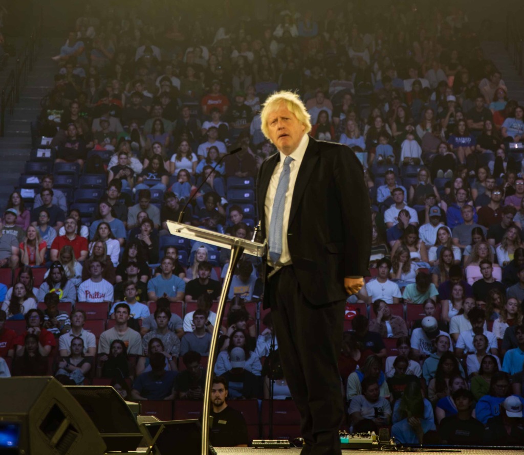 Former U.K. prime minister, the Rt. Hon. Boris Johnson addressed students from the Vines Center stage during Convocation Oct. 8 to discuss problems within the geopolitical arena and what needs to happen to preserve democratic governments.