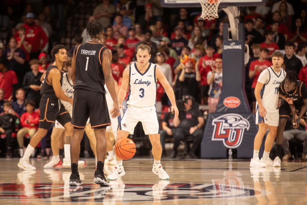 A few moments later, senior forward Zach Cleveland brought the ball down on a rebound and passed to redshirt freshman forward Ryan Jones Jr. who found the net from the 3-point line, lifting Liberty to a 5-0 lead.