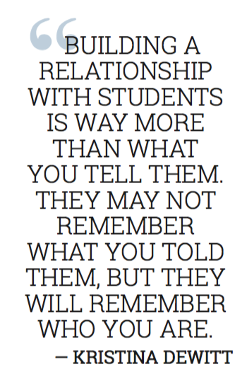 “Building a relationship with students is way more than what you tell them. They may not remember what you told them, but they will remember who you are.”