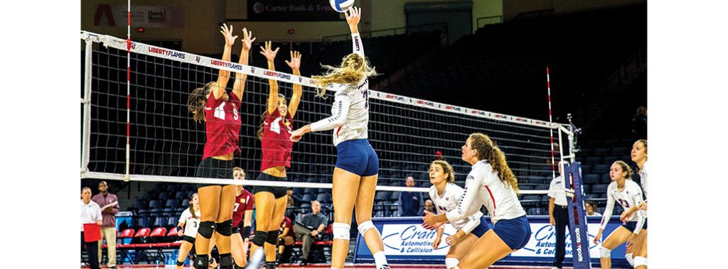 The momentum did shift – this time in the Lady Flames favor. Liberty surged forward in the second set, winning 25-13. The Lady Flames defense stood strong with 11 of their points coming from errors by the Eagles. Sophomore middle blocker Anna Gragg led the Lady Flames with five kills in the set.