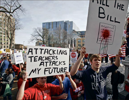 If collective bargaining rights are taken away from the teachers, they will have to individually re-new their contracts. Salary increases will not be for everyone. Since the teachers who are not as efficient or teach poorly will be paid less then they are now they will not benefit from the group effort to monopolize their contracts.