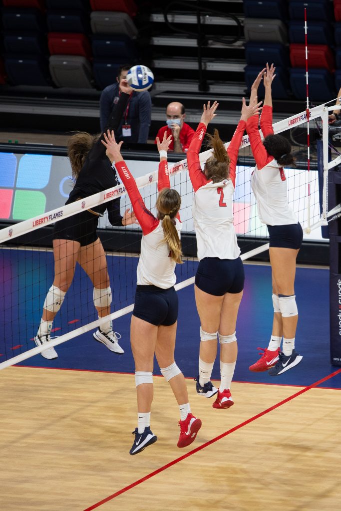 Liberty’s women’s volleyball team dropped its second consecutive match to Lipscomb in four sets on Sunday to start the season at 0-3, leaving the Lady Flames winless in Liberty Arena since its opening.