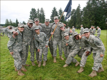 In training — Austin Coombs (center, holding flag) practices leadership in personal life, Liberty ROTC program and Army National Guard. Photo provided