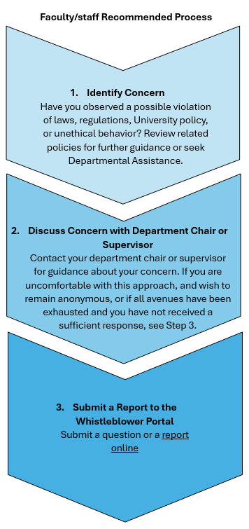 We recommend you visit our FAQ page before submitting a report to ensure this is the proper reporting avenue. Recommended reporting processes for faculty or staff is to the right, processes for students or the public are found below.