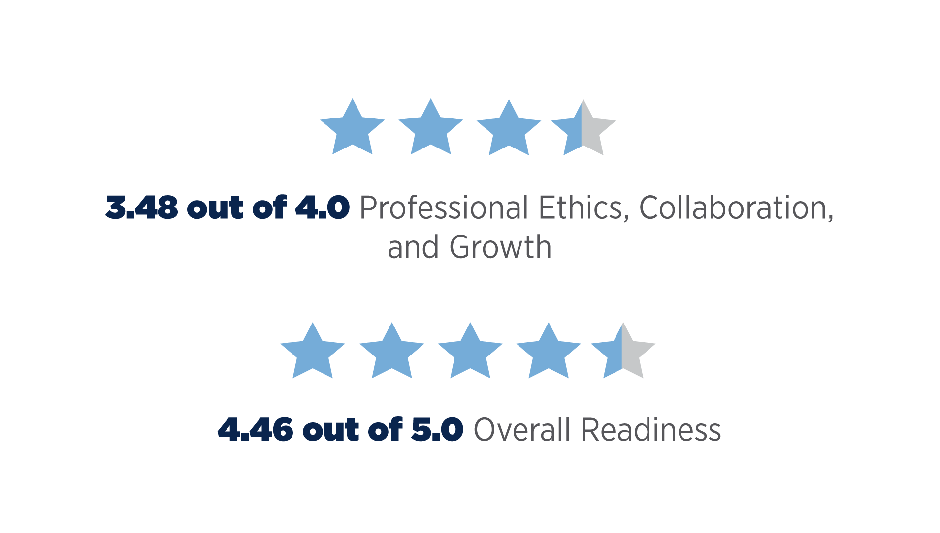 - 3.48 out of 4.0 on the teacher’s commitment to professional ethics, collaborating and communicating effectively, and taking responsibility for and participating in professional growth that results in enhanced student learning. (N=163)