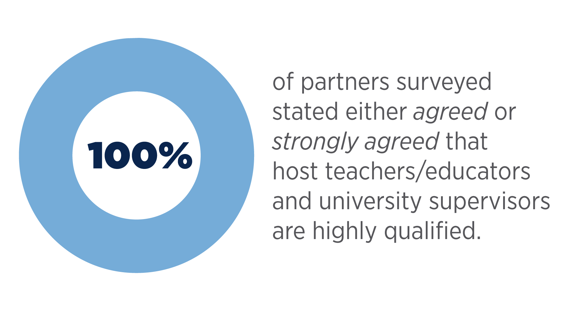 - 100% of partners surveyed stated either strongly agreed or agreed that host teachers/educators and university supervisors are highly qualified.