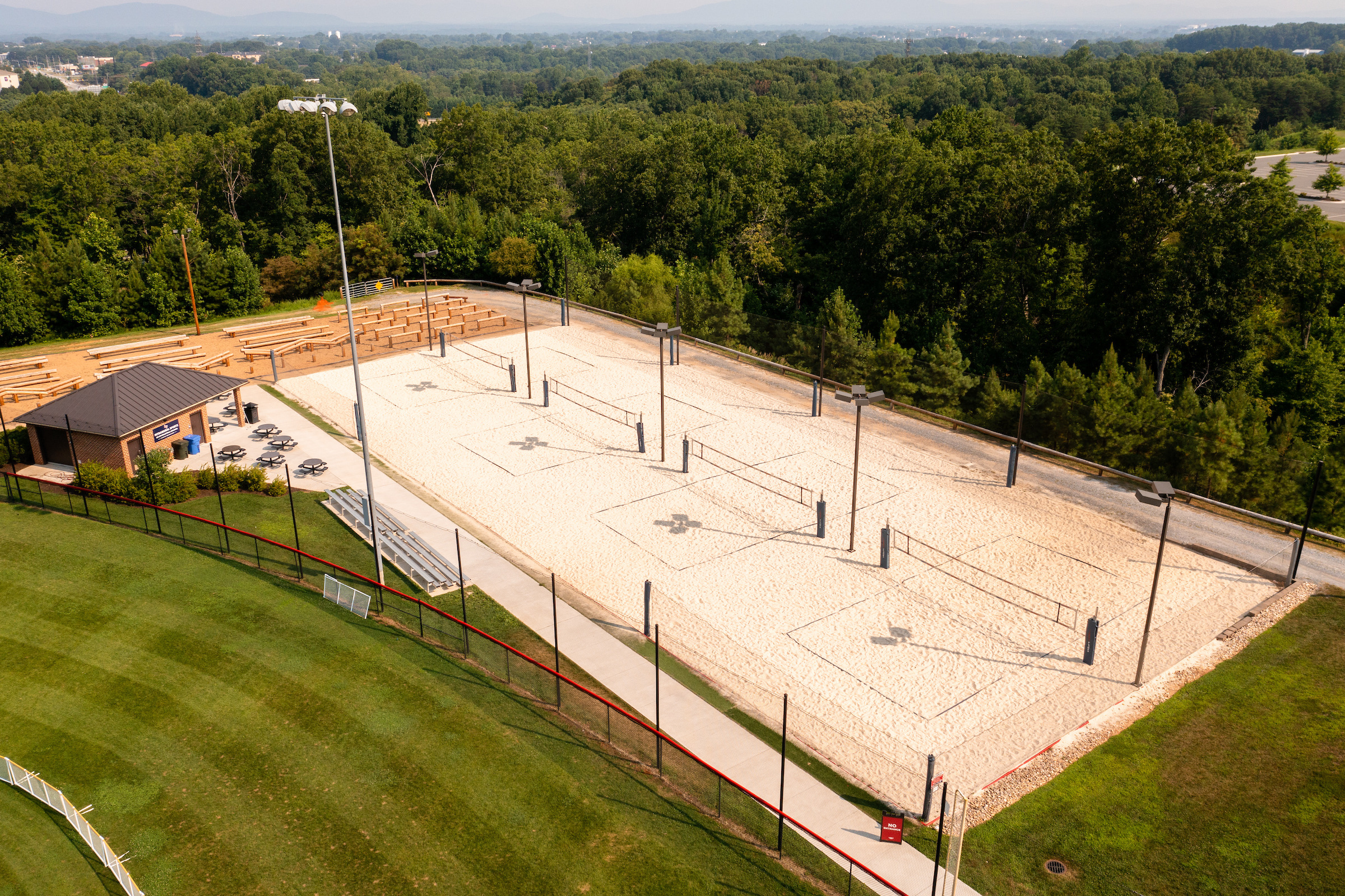 Eight sand volleyball courts are located on East Campus. The courts are home to the Liberty beach Volleyball team and are lit for nighttime use and open play.