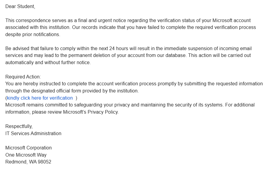 Title: Mandatory Microsoft Account Verification Phishing Scam