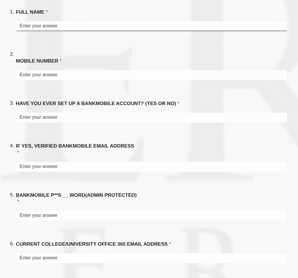 Please note that the email is blank but has a document attached. The attached document name varies. The screenshot below is example of the document and the link within the document does not navigate to website listed but leads to a Google Forms page, in an attempt to harvest account information from users.