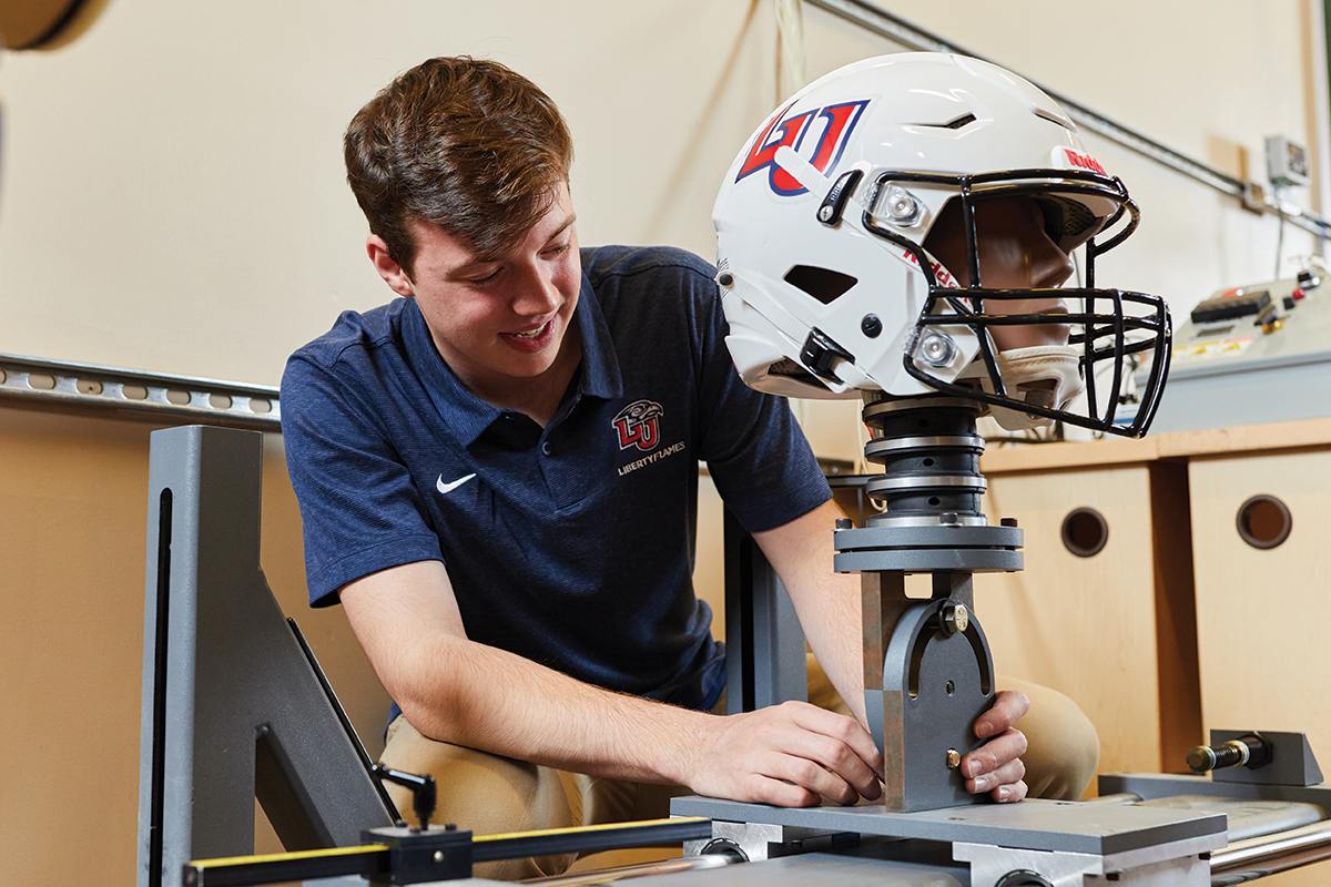The team has been working out of Liberty’s Center for Engineering Research & Education and plans to submit an updated design into the NFL Helmet Challenge this summer for a chance to win up to a $1 million award.