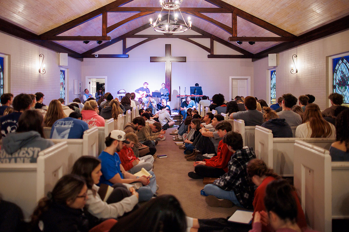 For Liberty, the Collegiate Day of Prayer was wrapped up into a weeklong emphasis on spiritual renewal and coincided with the university’s regularly scheduled 24 hours of prayer. Pokluda and Crawford participated in a Next Gen Revival Prayer Panel at Wednesday’s Convocation, and Pokluda delivered the message at the Campus Community service on Wednesday night. Starting at midnight, students, faculty, and staff gathered at the Worley Prayer Chapel and in other designated spaces to pray, then they transitioned to the Vines Center for the Collegiate Day of Prayer event. Prayer continued at the chapel the rest of the night. On Friday morning, Knechtle closed out the week during Convocation.