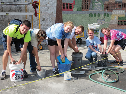 The Community Care Initiative was launched at the beginning of the Fall 2012 semester, and already more than 35 projects have been completed throughout the Lynchburg area. These include housekeeping and yard work for the elderly and disabled, painting at the Blue Ridge Pregnancy Center, a building blitz with Habitat for Humanity, a mosaic wall for the children’s museum, cleaning up local parks, and visiting nursing homes. More than 1,200 “hours of care” have been recorded since September.