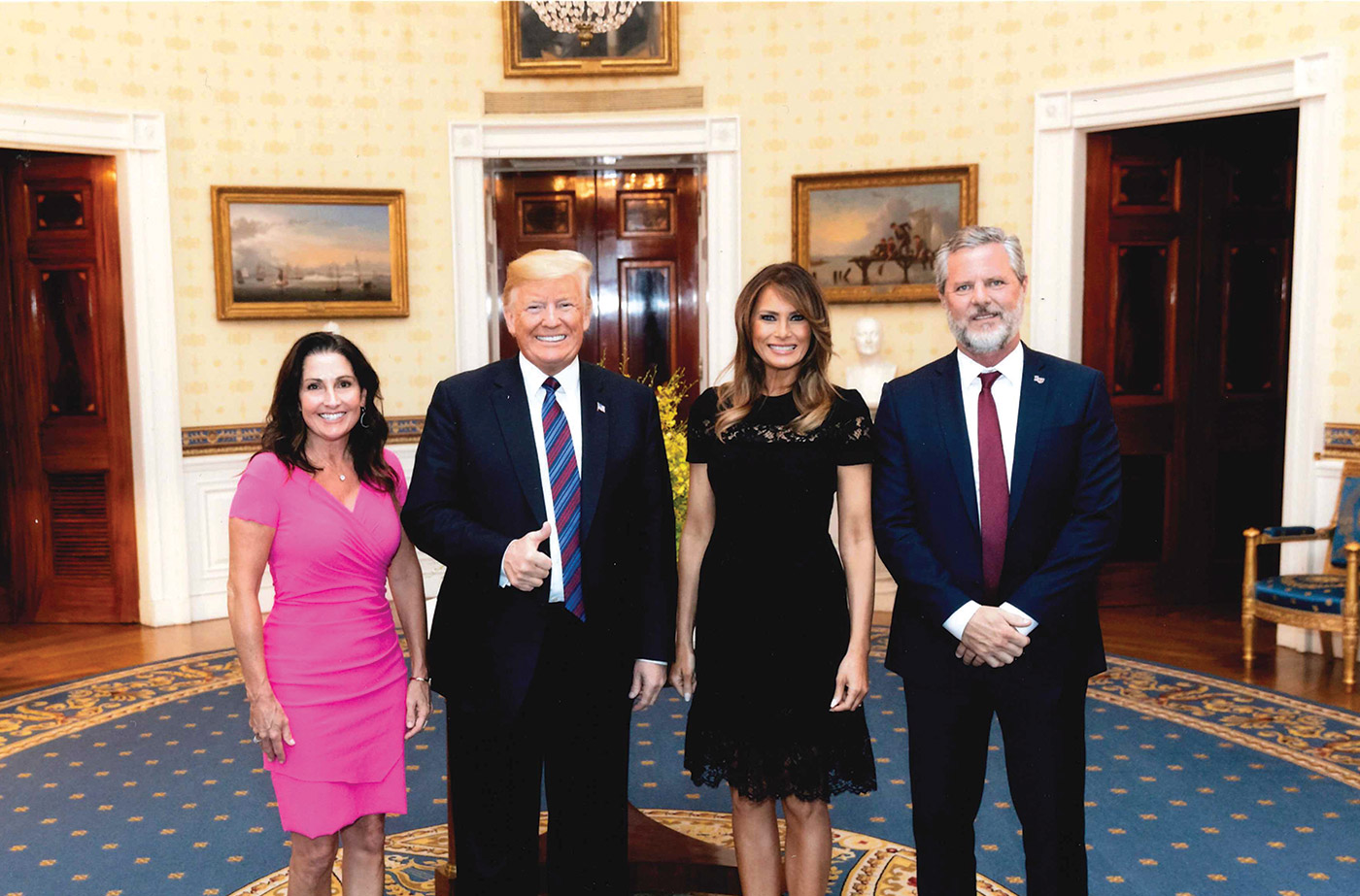 Liberty University President Jerry Falwell and his wife, Becki, represented Liberty at a state dinner at the White House on Aug. 27, joined by about 100 influential faith leaders, including pastors, education leaders, professional athletes, former presidential candidates, and heads of conservative political organizations.