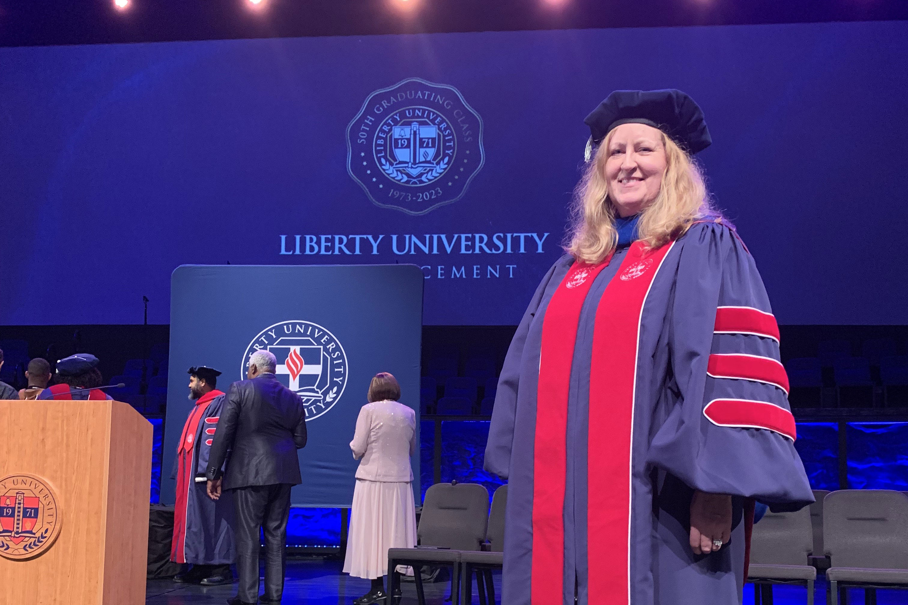 Johnson made the donation in honor of his late wife, Dr. Michelle Johnson (pictured above), whose love for the Bible led her to pursue three degrees from Liberty: Master of Arts in Biblical Studies (’11) and Master of Divinity (’16), which she earned through Liberty University Online Programs, and a residential Ph.D. in Theology & Apologetics (’23).