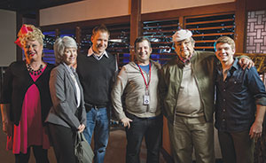 Cinematic arts staff met with Hollywood producers Roma Downey and Mark Burnett during the couple’s visit to campus in January. Pictured are (from left) Scotty Curlee, assistant professor of cinematic arts; Downey; Stephan Schultze, executive director ; and Burnett.