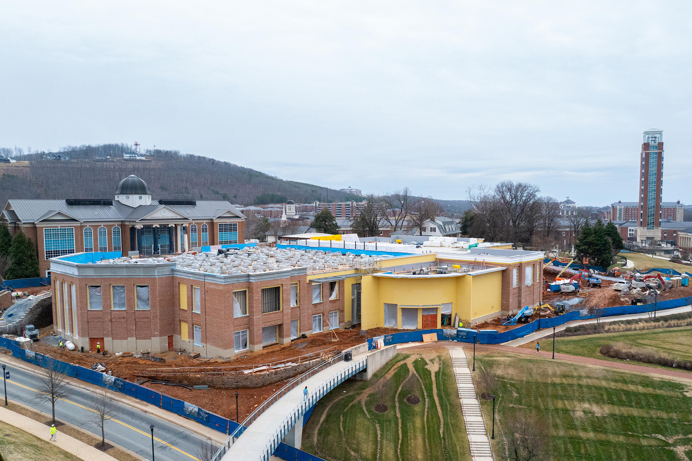 The latest major construction project on campus has taken greater shape in recent months. Scheduled to open for the 2026-27 academic year this fall, the 68,000-square-foot facility is an extension of the Hancock Welcome Center and will serve many functions, all with the goal of presenting and preserving the original mission of Liberty University: Training Champions for Christ. The building will feature a new Event Space with seating for 2,000, making it the largest meeting room of its kind in the Lynchburg area. Students and visitors will also enjoy a rooftop plaza with stunning views of the Blue Ridge Mountains and areas to relax and study. Visit LibertyChampionCenter.com.