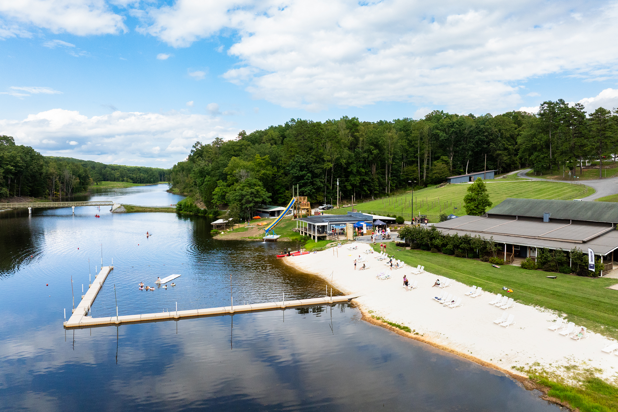 Hydaway Lake opened for student use last fall after being closed the last few years to undergo a major expansion. The Campus Recreation department kicked off the grand reopening on Aug. 22 with a Beach Bash. Students enjoyed swimming, canoeing, beach volleyball, fishing, a giant waterslide, water jousting and log rolling competitions, and more. The 31-acre lake is part of the Hydaway Outdoor Center on Liberty Mountain. During the school year, the center provides equipment for students to check out (bikes, canoes, kayaks, fishing equipment, and more). Students can also take advantage of the trails around the lake, part of the vast Liberty Mountain Trail System.