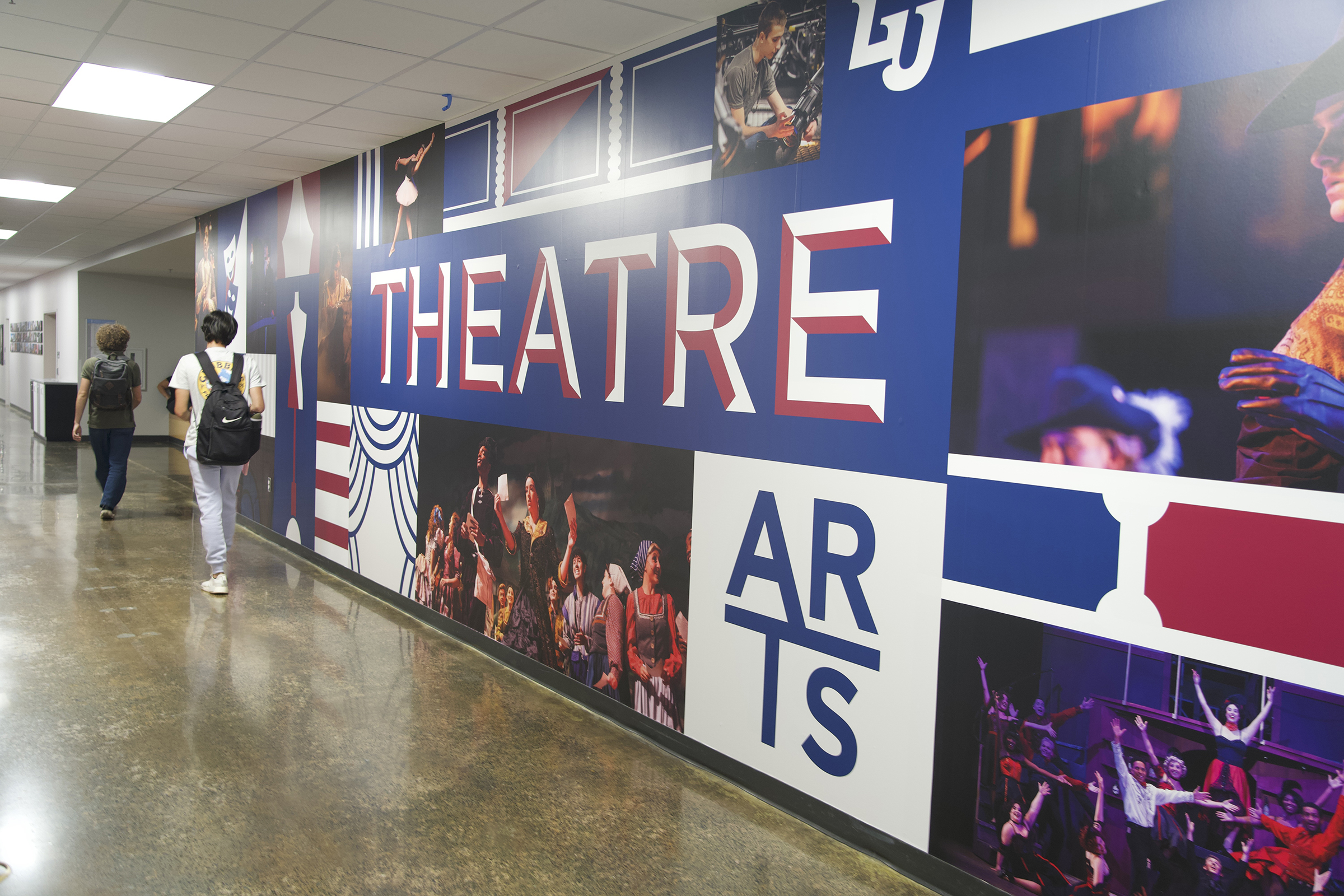 To represent the diversity of disciplines within the School of Communication & the Arts, the school tasked a team of students to create and install environmental graphics on the walls of Marie F. Green Hall to cultivate a creative environment, better define the different departments’ locations, and showcase its exciting programs. While many of the graphics serve as signage, there are also mottos, mosaics of promotional photos taken by department photographers, and elements that represent all departments within one piece. Each department has its own icon and color.