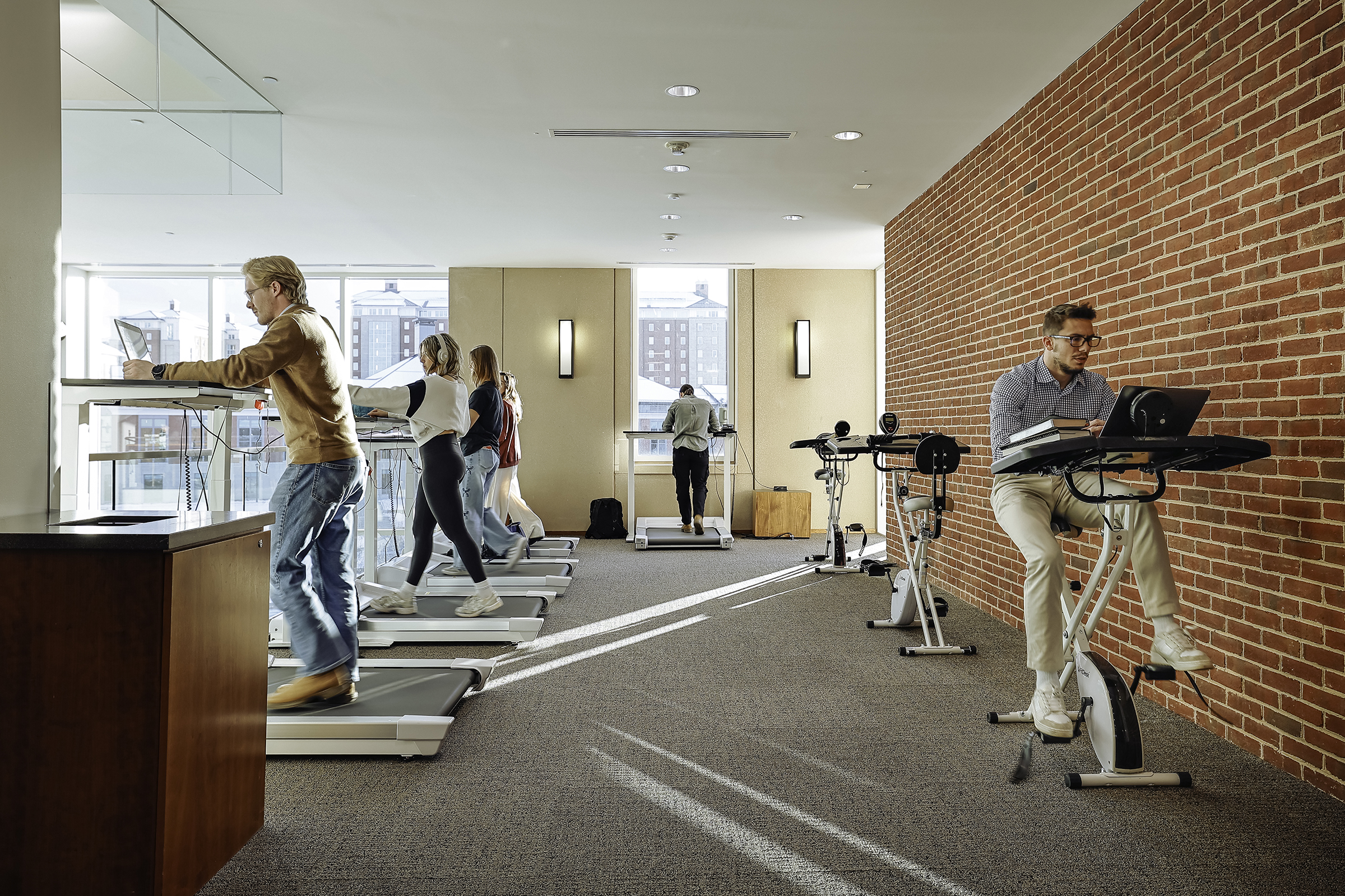 Since its opening in 2014, the Jerry Falwell Library has been known for its innovative design, advanced technology, and unique areas for study, collaboration, and gathering with classmates and friends. In the fall, staff updated outdoor seating, remodeled spaces throughout the building, and added three treadmill desks in the Gallagher Learning Commons on the second floor. The library also offers bicycle desks.
