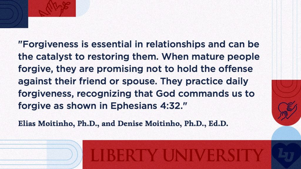 Forgiveness vs. Holding Grudges | Forgiveness is essential in relationships and — we believe — the catalyst to restoring relationships. When mature people forgive, they are promising not to hold the offense against their friend or spouse. They practice daily forgiveness, recognizing that God commands us to forgive as shown in Ephesians 4:32. What we need to remember is that forgiveness does not mean we must become a doormat or that there are no consequences for people’s sins and offenses against others. You can still set boundaries in relationships with respect and understanding.