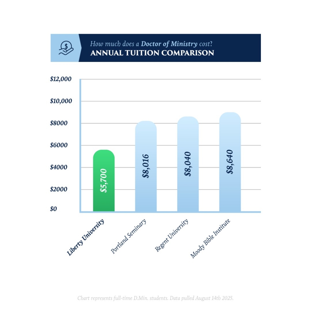 For the 2025-2026 academic year, we are proud to offer a block rate of $2,850 per semester for full-time D.Min. students taking 7-15 credit hours – that’s only $5,700 for the school year!*