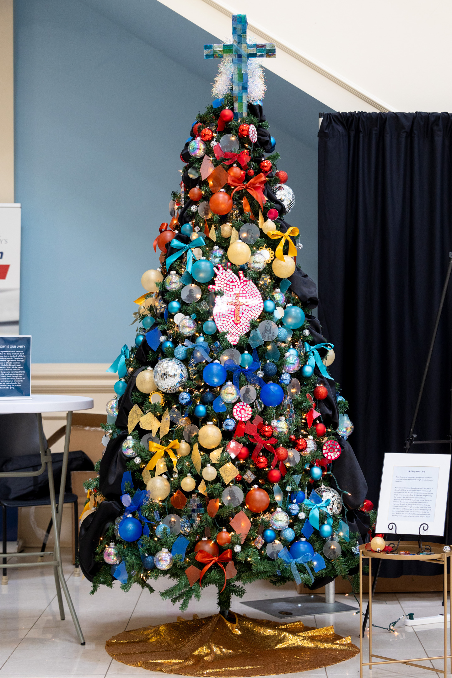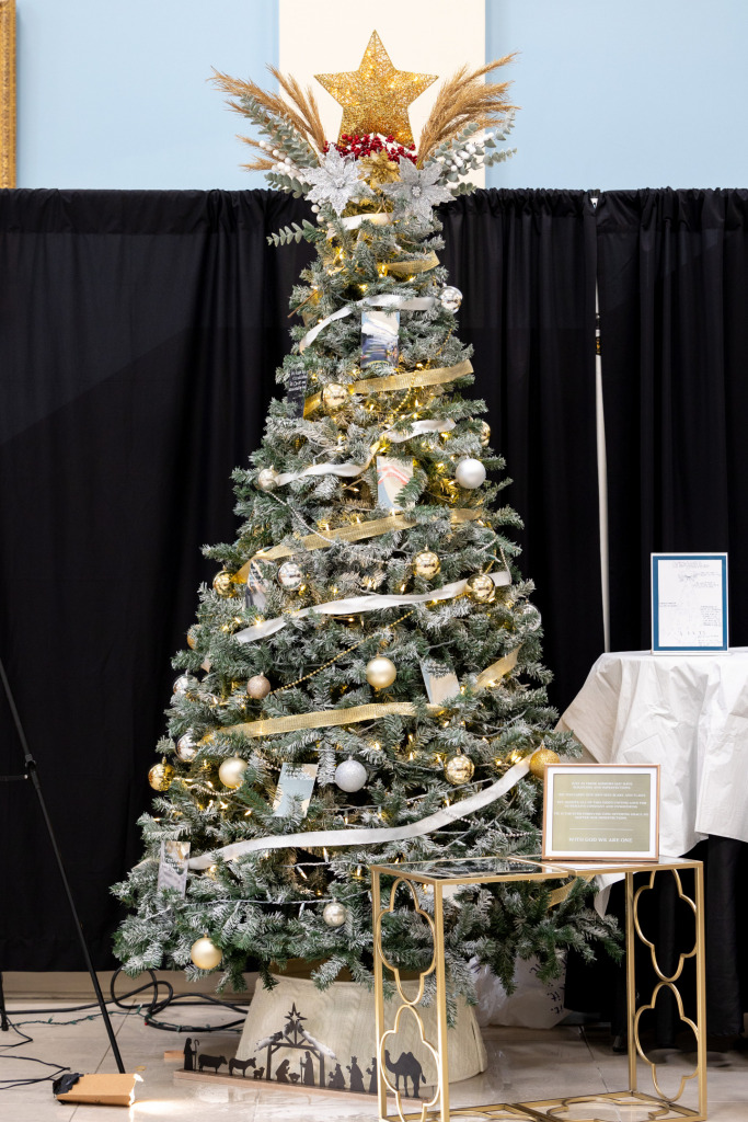 Our tree is inspired by Revelation 4 and 5, which detail the worship that happens before the throne of God. The united church is present, God’s appointed elders, God’s heavenly angels and creatures, and the rest of creation itself, all crying out to God giving him the glory he deserves. The conquering King opens his special scroll, and all of the universe cries out with joy, for the Messiah is now returning to finish evil once and for all.
