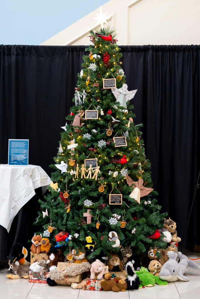 A total of 10 Christmas tree art installations were created by 20 talented artists, with students Ariana Murphy and Marie Shumaker taking first place. The trees were displayed in the DeMoss lobby where visitors were invited to reflect on the hope and joy of the gospel while enjoying s’mores, hot chocolate, and the impactful ambiance of the holiday season.