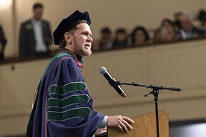 Prior to the official hooding, Dr. Bell spoke to the class on a brief message focusing on patients, milestones, and excellence. He reminded them of a quote from 19th-century physician Dr. Rudolf Virchow, who said, “Medical education does not exist to provide students with a way to make a living, but to ensure the health of the community.”