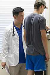 Under the direction of LUCOM faculty members, Liberty’s osteopathic medical students offered sport physicals on patients from 5th-12th grade. New Covenant athletes had vitals, height, weight and vision checked by the medical students prior to their physical. The physical exam included ENT, lymphatics, dermatologic, abdominal, cardiac, respiratory, neurological and musculoskeletal.