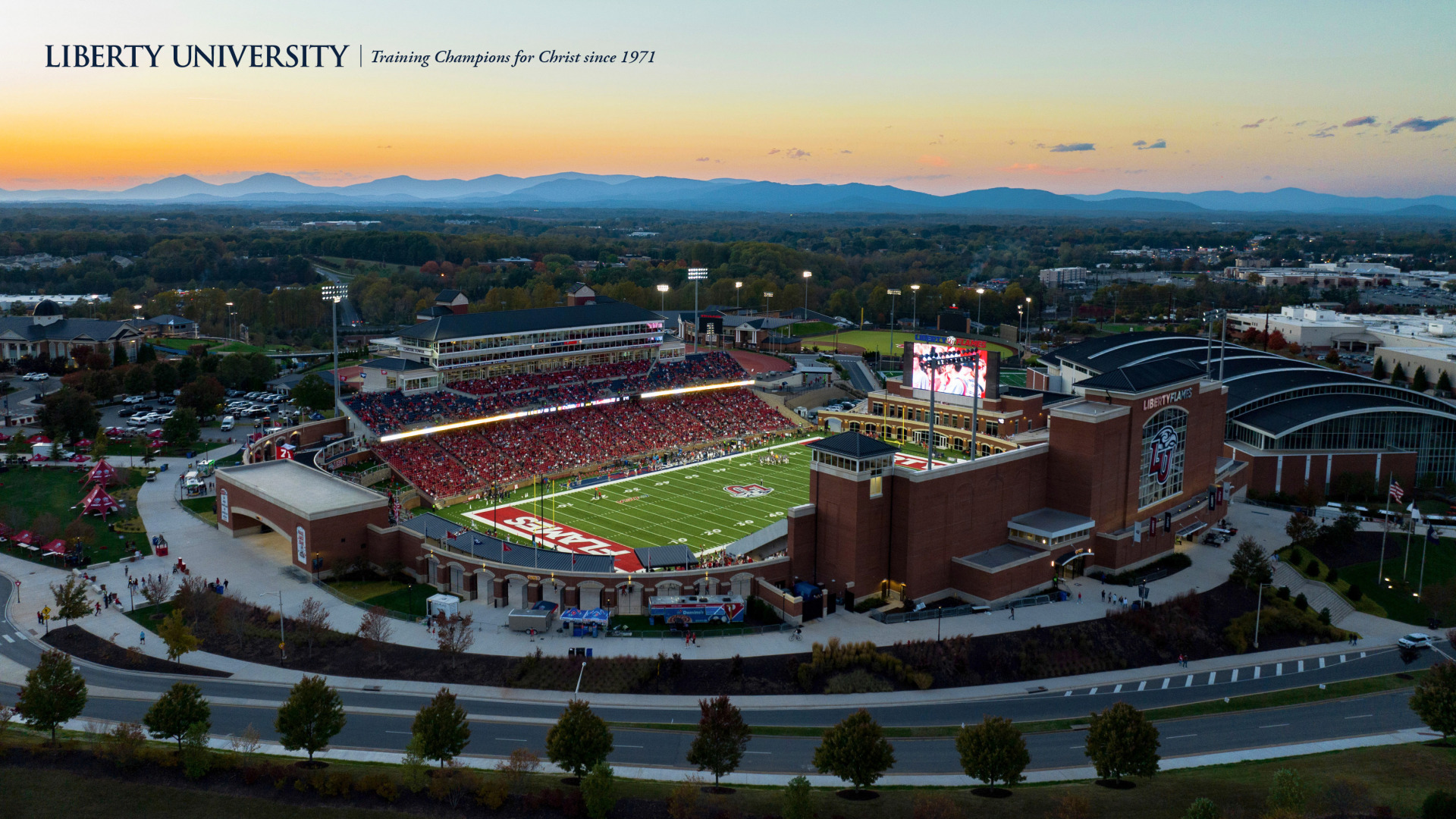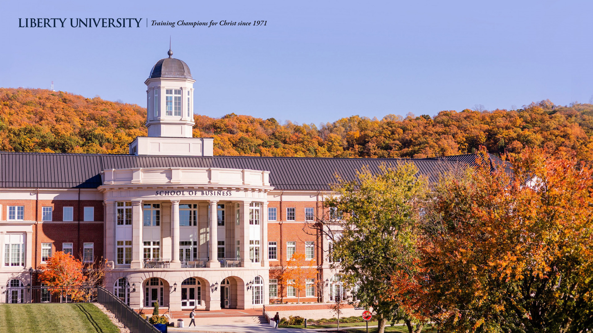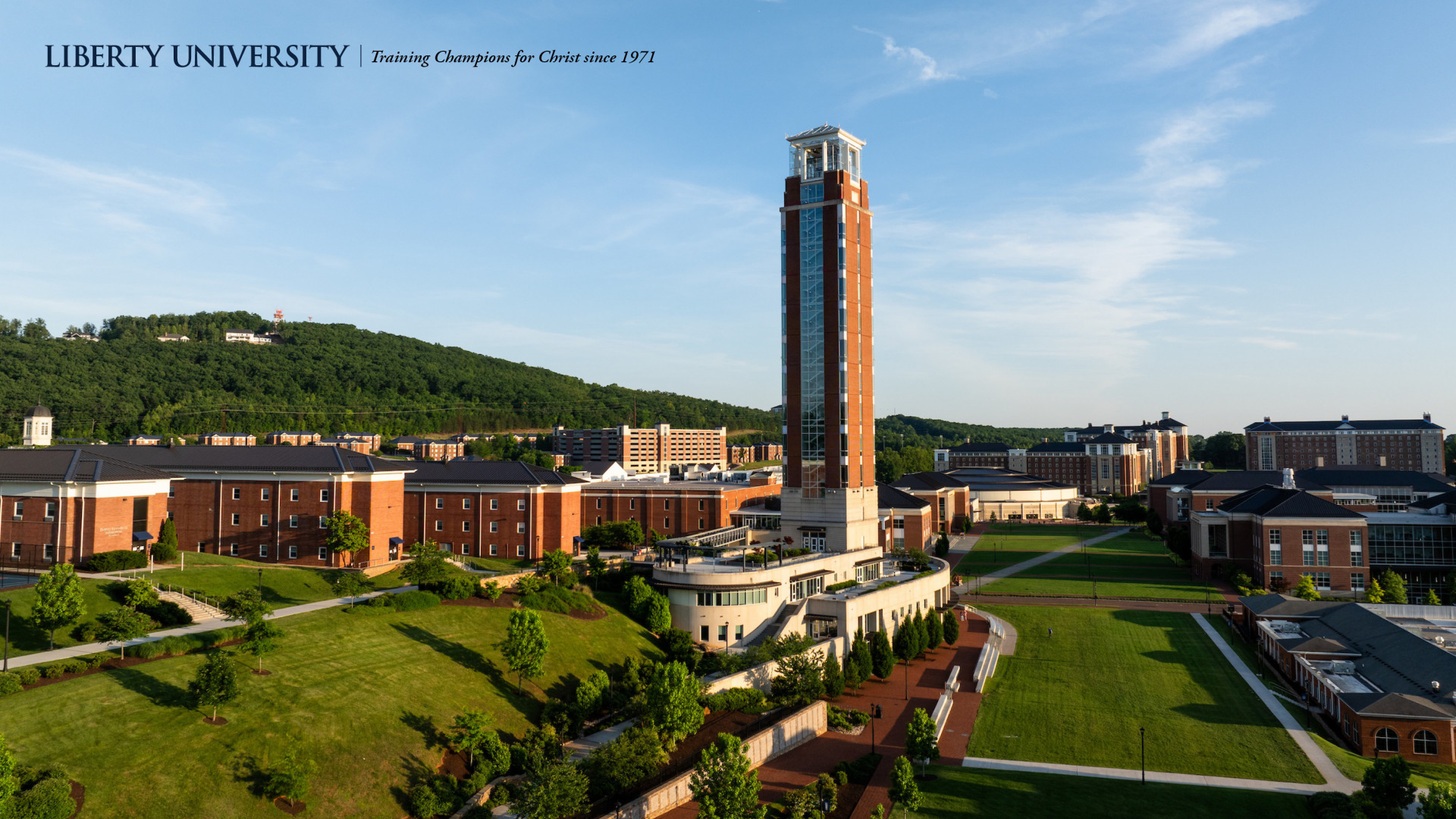 Liberty University-branded images are available for your computer wallpaper background, desktop telephone background, and as PowerPoint templates.