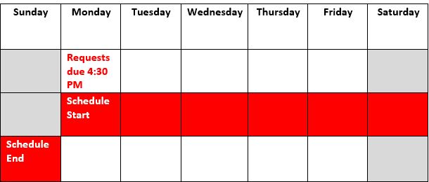 Readerboard schedules are created weekly. To be considered for the upcoming week, all message requests must be submitted to readerboard@liberty.edu by 4:30 p.m. ET on the Monday prior to the desired run week. Late submissions may be denied unless under extenuating circumstances.