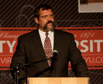 John was the main speaker for Friday’s convocation, where Liberty students gathered to remember the victims of 9/11. Before he spoke, campus pastor Dwayne Carson led students in prayer for families of the victims.